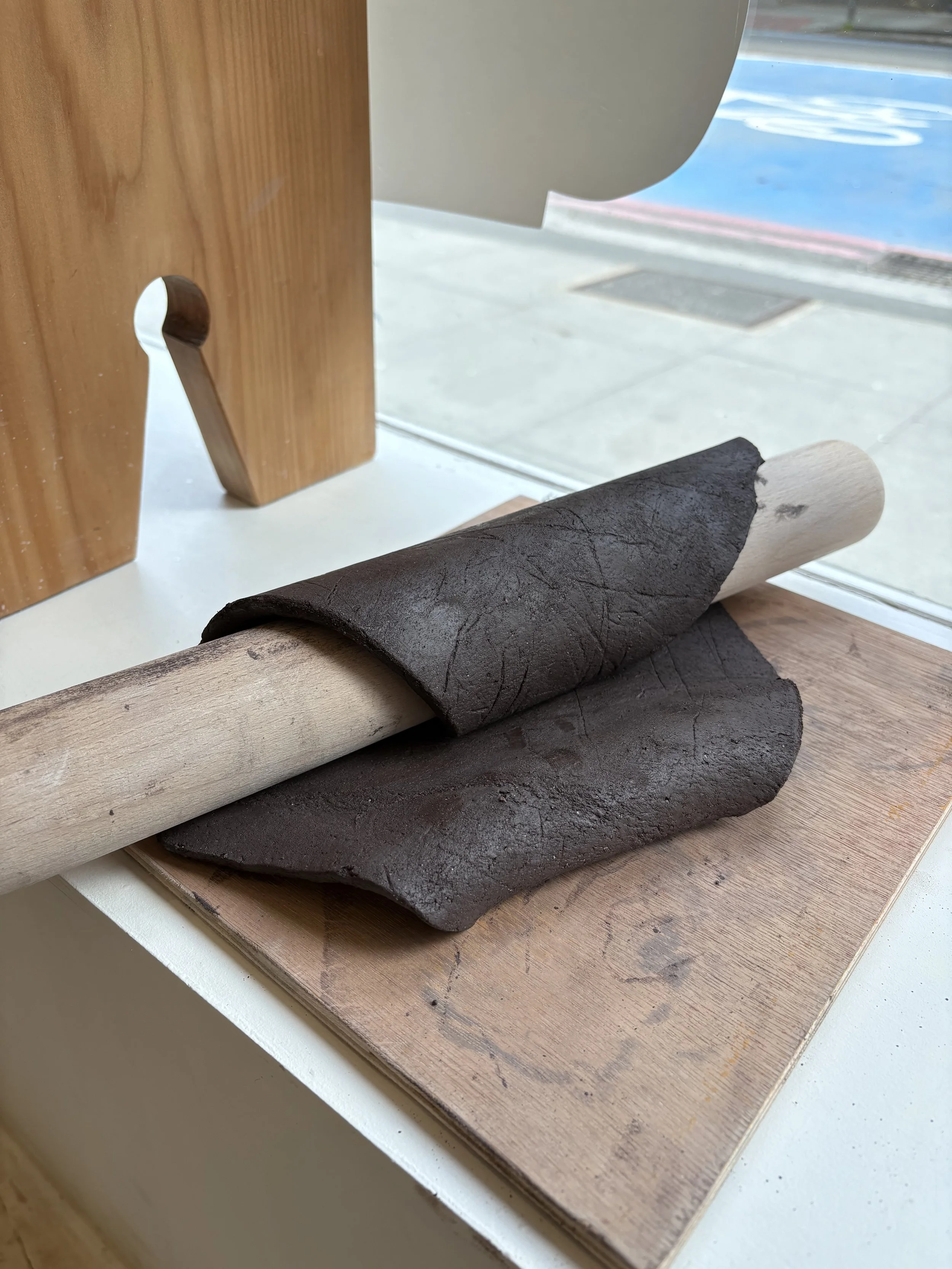 “Inspired by the humble roof tile - its endurance, its fragility — Snead reimagines architecture as collapse in slow motion. Working with volcanic clay, he coaxes forms that resist stability: slumped, cracked, exposed.”